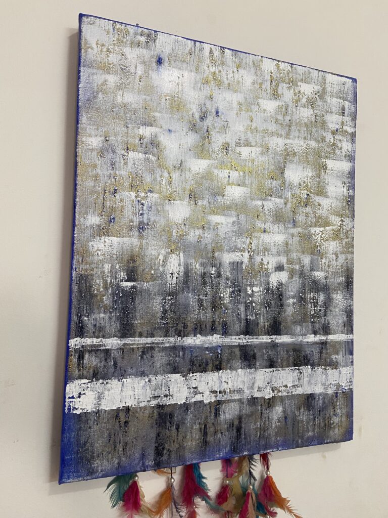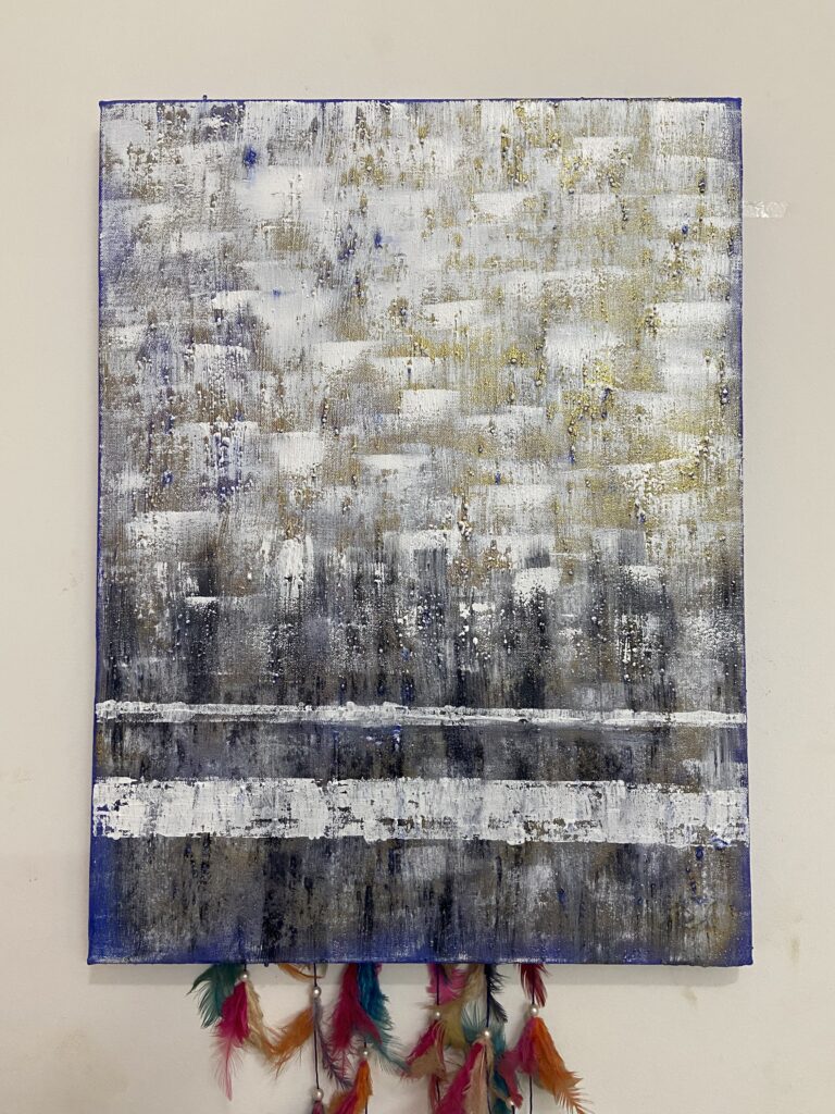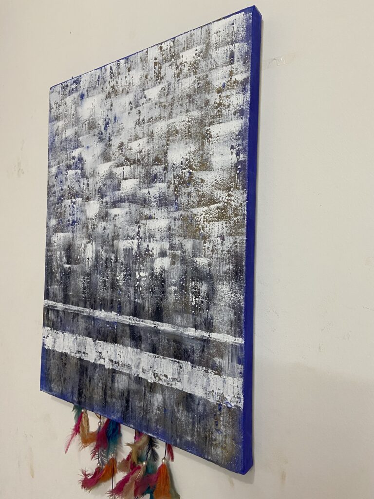 Today, I tried something different, experimenting with texture by mixing sea sand with gesso, creating multiple layers of color. Each layer symbolizes the different facets of our inner selves, the thoughts, emotions, and traits that we store in our subconscious mind knowingly or unknowingly. Some are positive, some hidden or darker, yet all influence our actions in ways we often don’t realize. The top layer of white represents the outer mask we consciously present to the world, the version of ourselves we want others to see. Just as shifting the viewing angle lets the hidden colors in the painting emerge, in life, I notice subtle glimpses of our inner layers peeking through our carefully curated exterior, revealing the complexity beneath the surface.