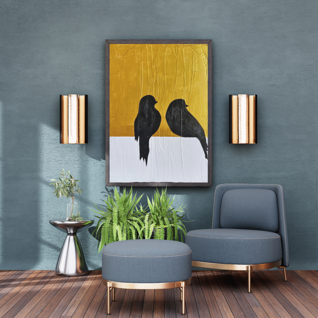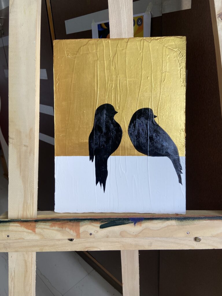 Minimalist Birds on Gold – A Textured Acrylic Painting