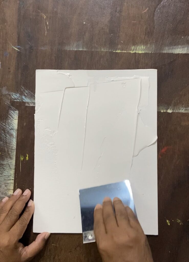 When I first applied wall putty on the board, it left patterns and texture, but I wanted a smooth, finished background. The consistency of the wall putty really matters.